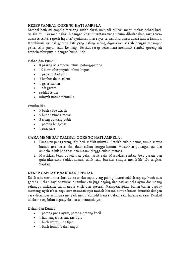 Resep Sambal Goreng Ati Ampela Enak : Resep Sambal Goreng Kentang Ati Ampela Yang Enak Dijamin Yang Coba Bakal Ketagihan. Cuci ati ampela sampai bersih, lalu rebus hingga empuk. Cara membuat sambal goreng ati ampela : Mau mencoba 3 variasi resep sambal goreng tempe bumbu paling enak? Setelah cukup empuk, tiriskan, lalu goreng hingga matang dan potong bentuk dadu. Sambal goreng hati maknyusss merkunyusss.