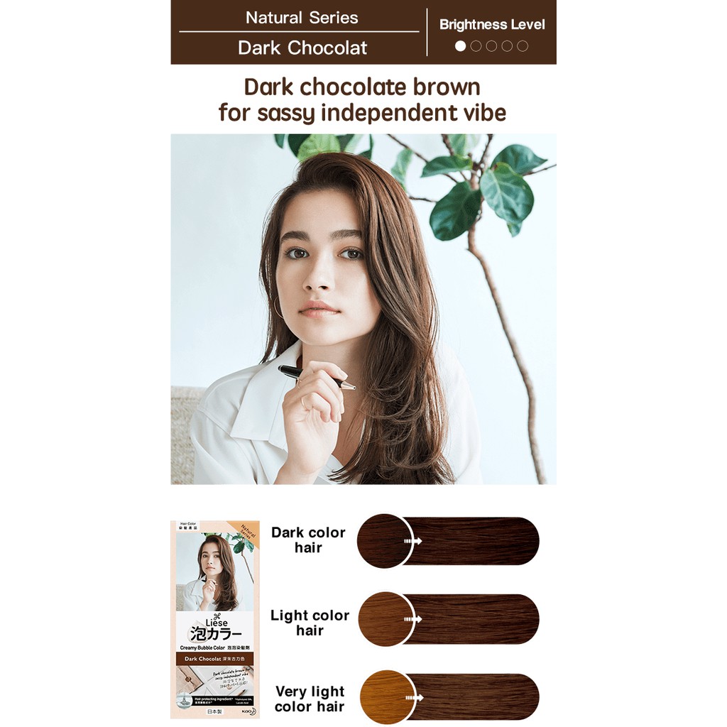 Liese Bubble Hair Color Dark Chocolate : Kao Liese Creamy Bubble Color. Prettia kao bubble hair color, 3.38 fluid ounce (dark chocolate) $28.77 ($3.60 / 1 ounce) in stock. Liese creamy bubble hair color is a foam format hair colorant that allows easy and even hair coloring. Kao liese soft bubble hair color (dark chocolate) by liese. Simply massage the foam onto hair for a rich and even color result. 2.8 out of 5 stars 4 ratings.